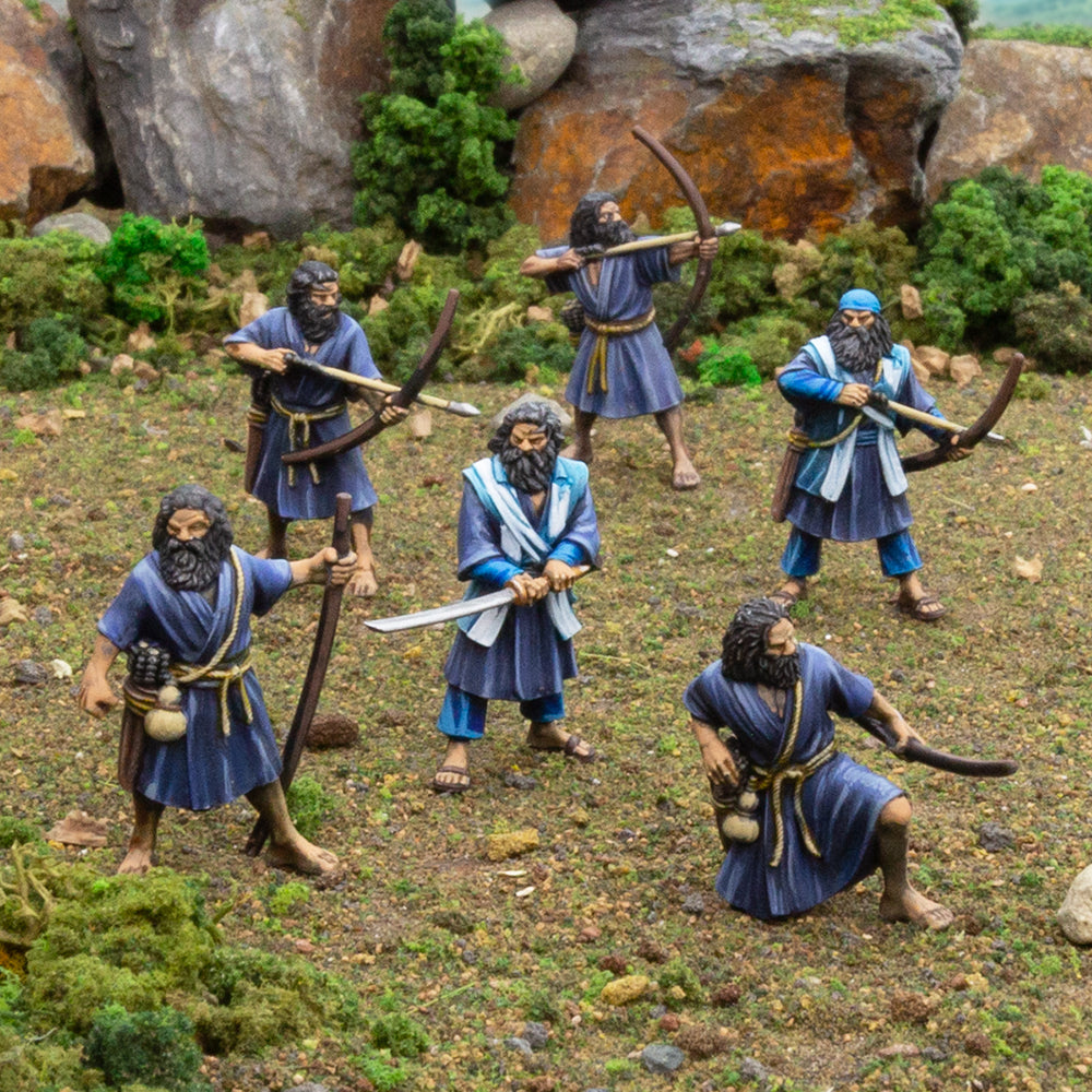 A small but mighty collection of Emishi horse and foot archers for use in your Samurai army. These were sculpted by Marco Dalhberg of Rosemary Miniatures just for you.