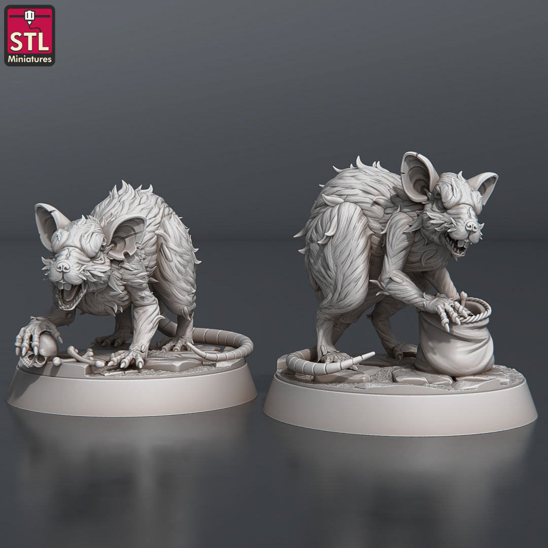 Two giants rats for use in RPGs, as table colour, or for those evil critters you're needing in your fantasy game.