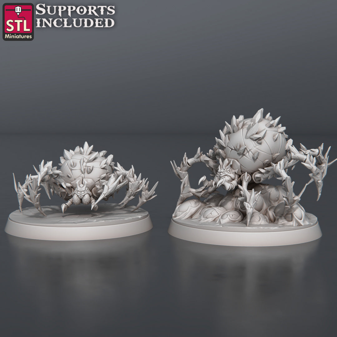 Two huge ice spiders for use in RPGs, as table colour, or for those evil critters you're needing in your fantasy game.